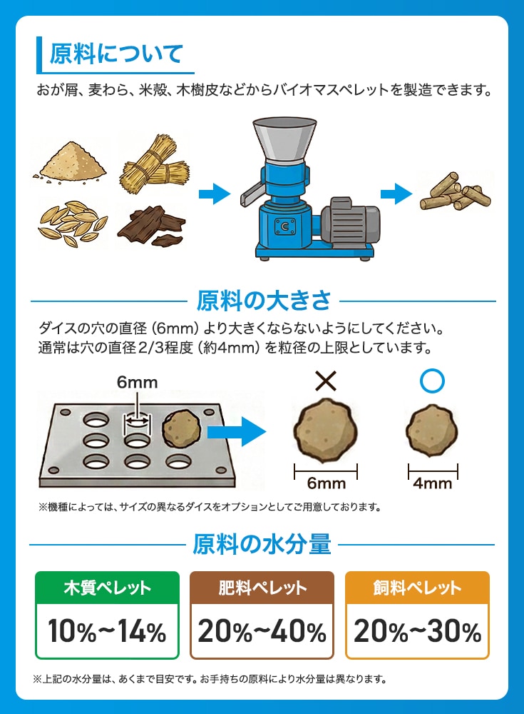 1時間あたりのペレット製造量は異なりますが使用方法は同じです。