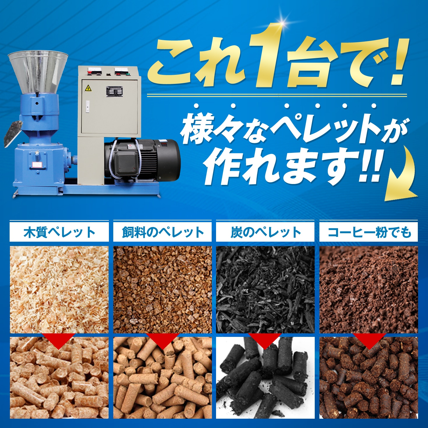 1時間あたりのペレット製造量は異なりますが使用方法は同じです。