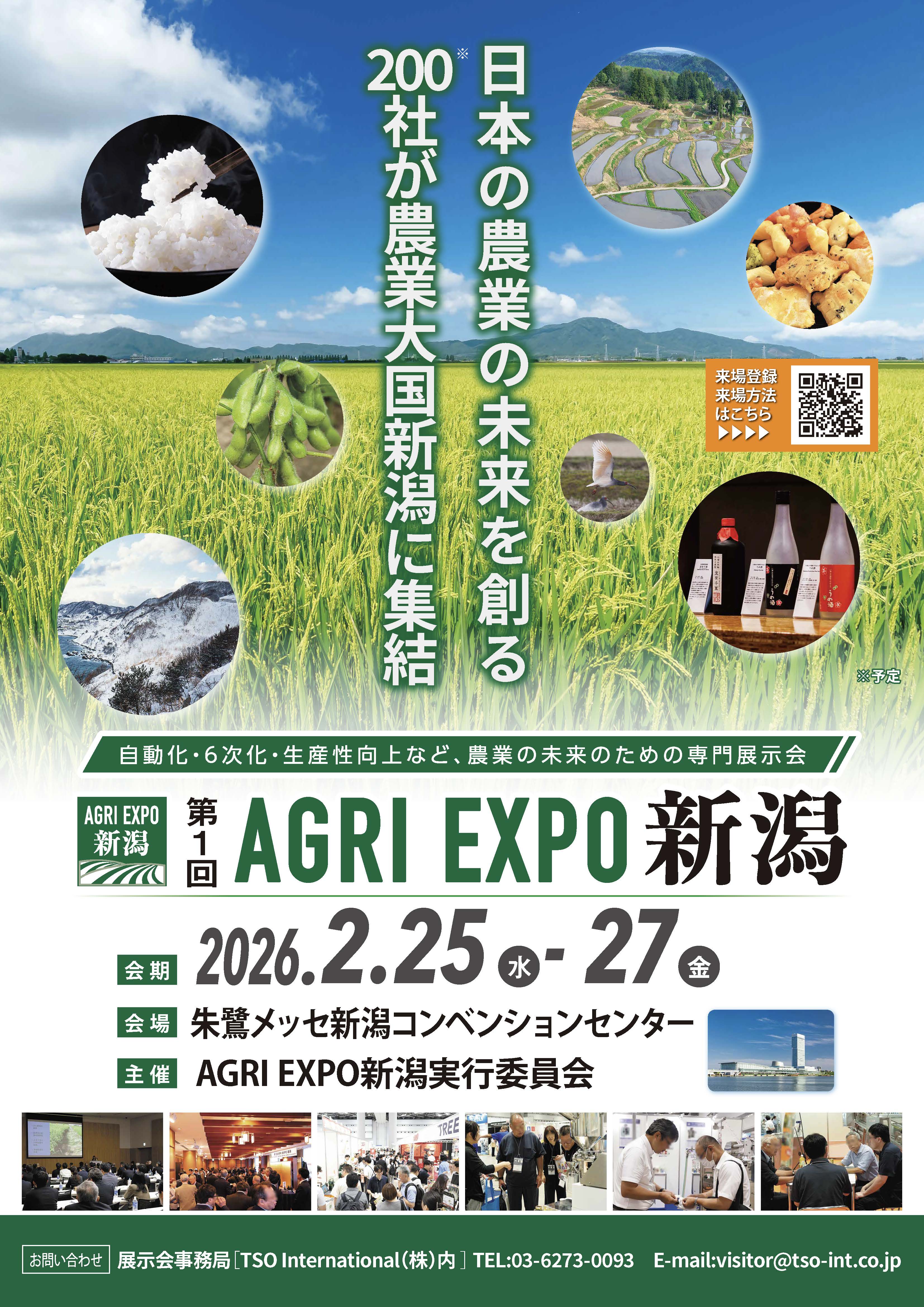 新潟で開催される『AGRI EXPO 新潟2026』に出展いたします。